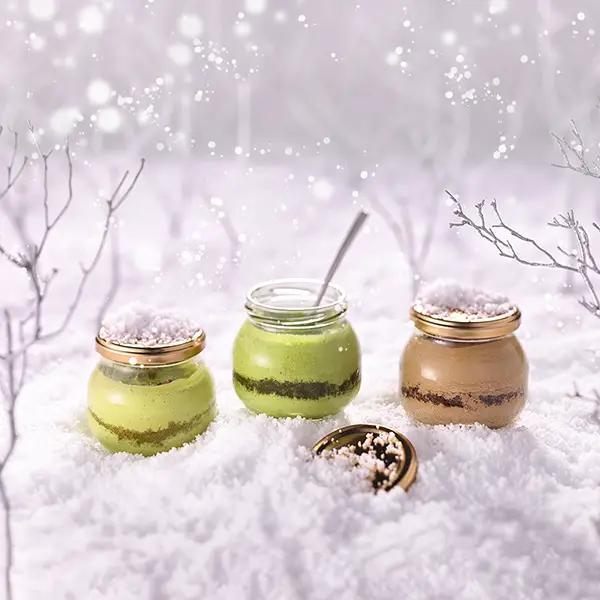 宇治抹茶デリスフロマージュお濃茶用の抹茶を2倍使用し、高貴な抹茶が香り立つお濃茶チーズケーキをお作りしました。幸せな余韻の秘密はレアとベイクド、二層のチーズケーキ。ふんわりやわらか、まるで抹茶の泡を飲んでいるかのように、口の中ですっととろけます。